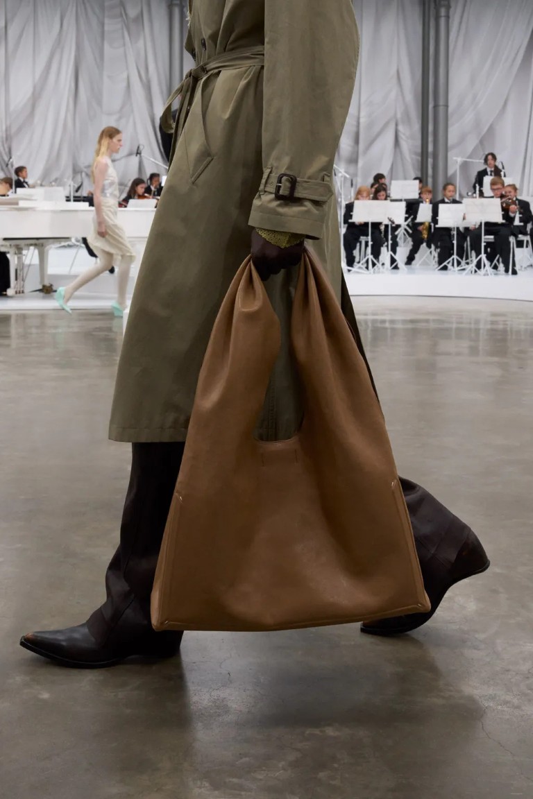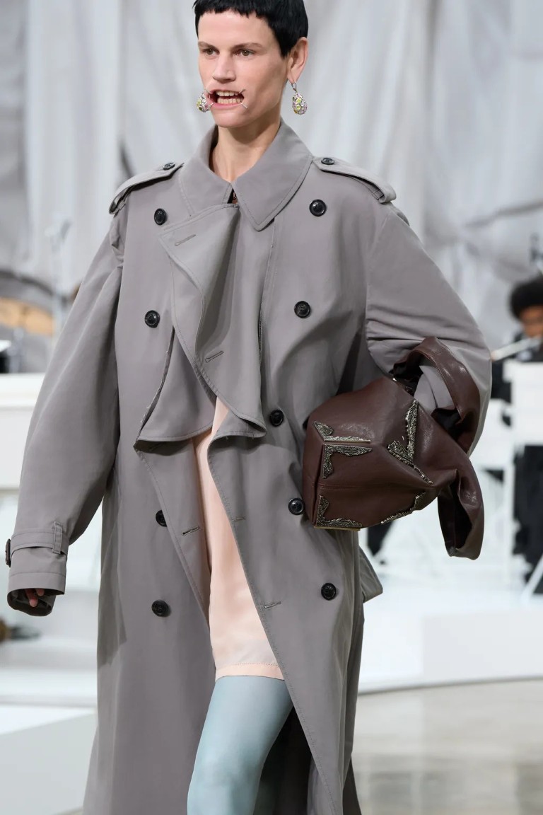 Mezi nejsilnější momenty přehlídky patřily architektonicky řešené bundy – rozřezané, sešité, tvarované tak, aby připomínaly pohyblivou strukturu. Martens zde ukázal své školení z antverpské královské akademie módy v plné síle. Objevily se i aktualizované verze ikon značky. Tenisky Future s moderními detaily nebo ikonické Tabi Claw boty s plexisklovými podpatky, které se poprvé objevily v konfekčním provedení po premiéře v haute couture.